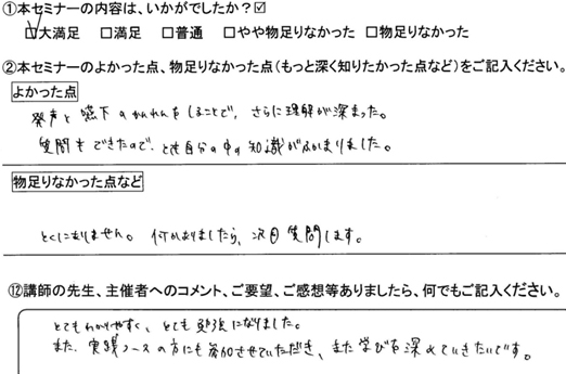 2008年11月開催「口腔リハビリテーションアカデミー3時間基礎コース」に参加された方の声を一部紹介します。