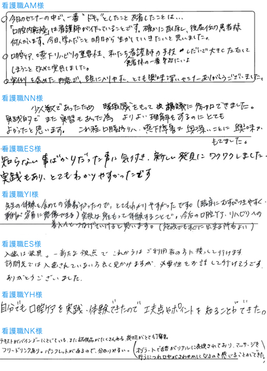 摂食嚥下リハビリ」に受講された方の声を一部ご紹介いたします。